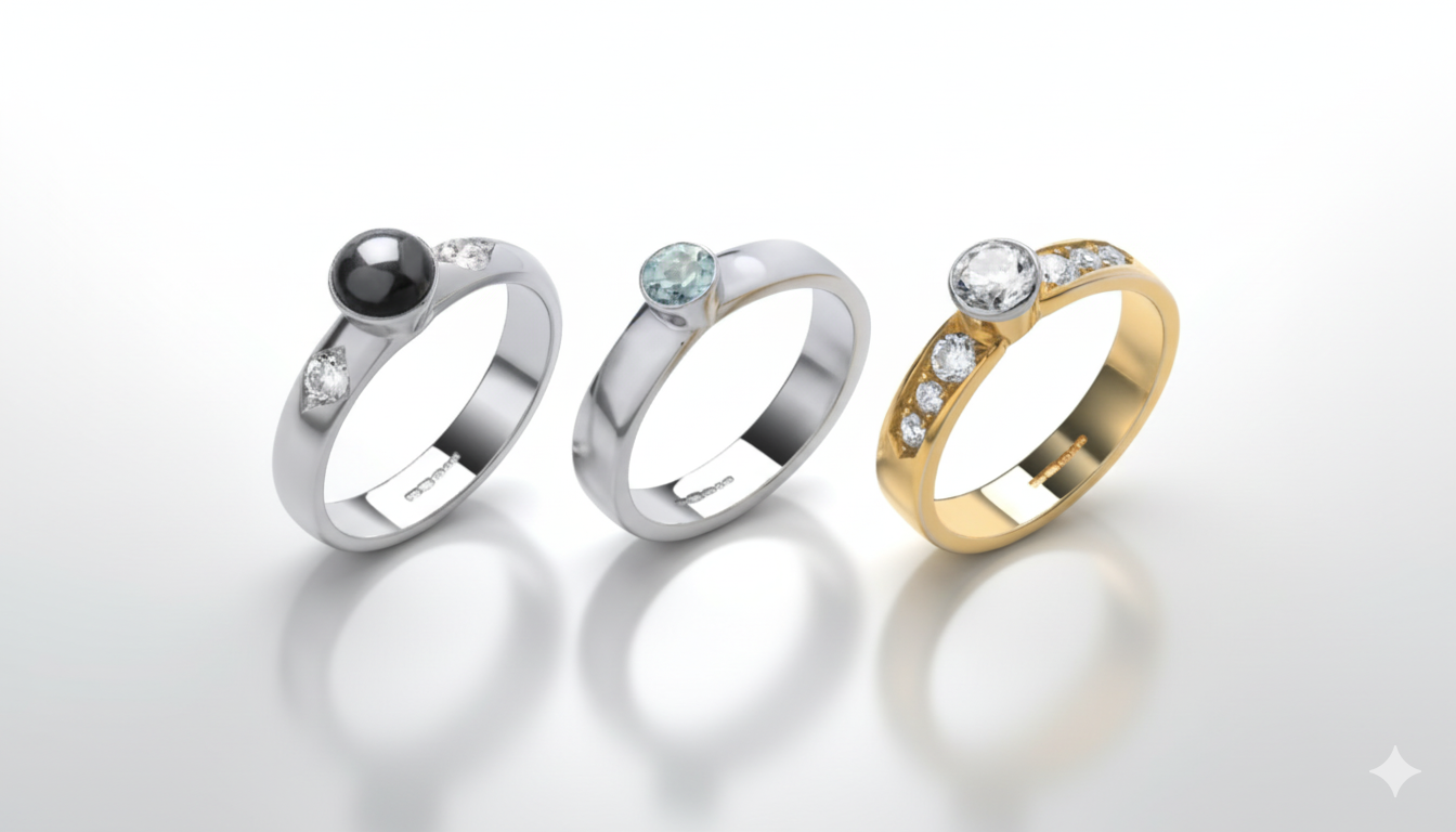 - 2x 3mm Brilliant cut stones set in eye settings either side of main stone