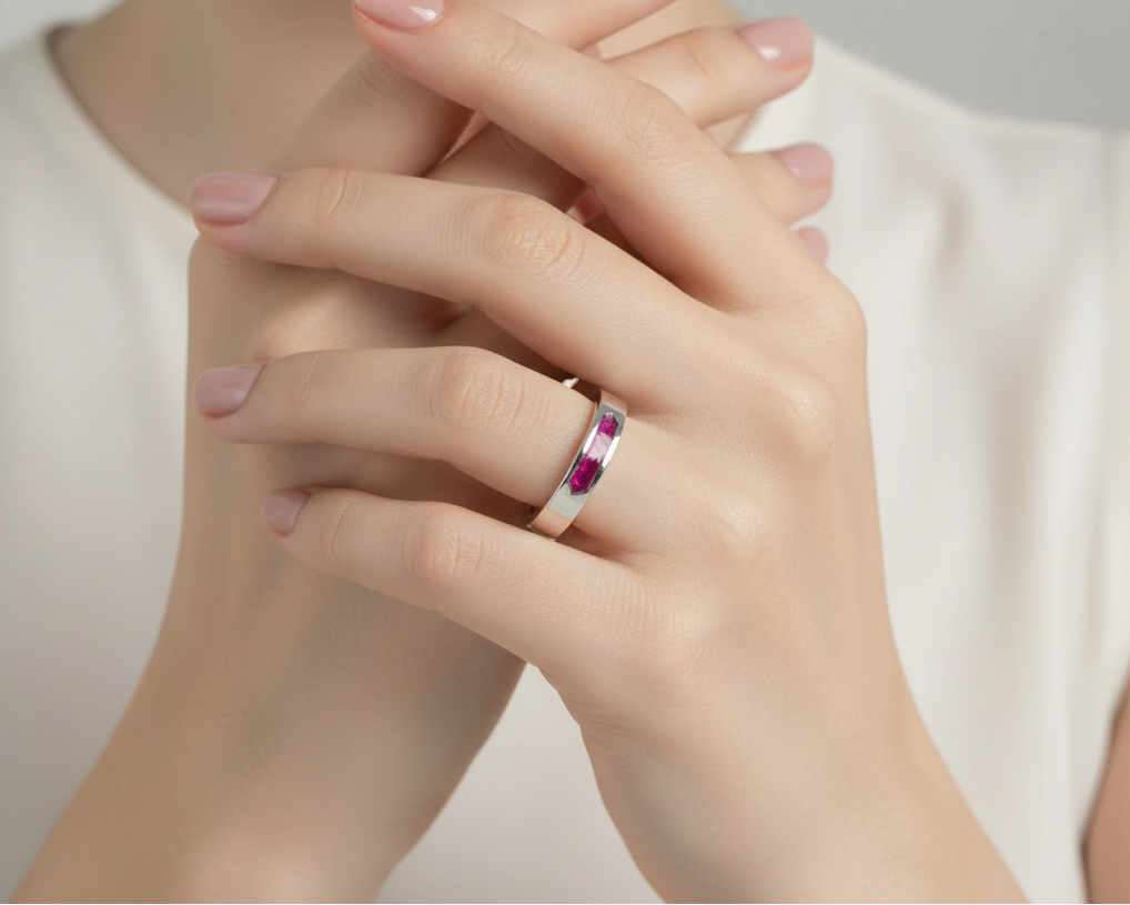 Simple channel design 4mm wide soft flat ring with ashes in resin